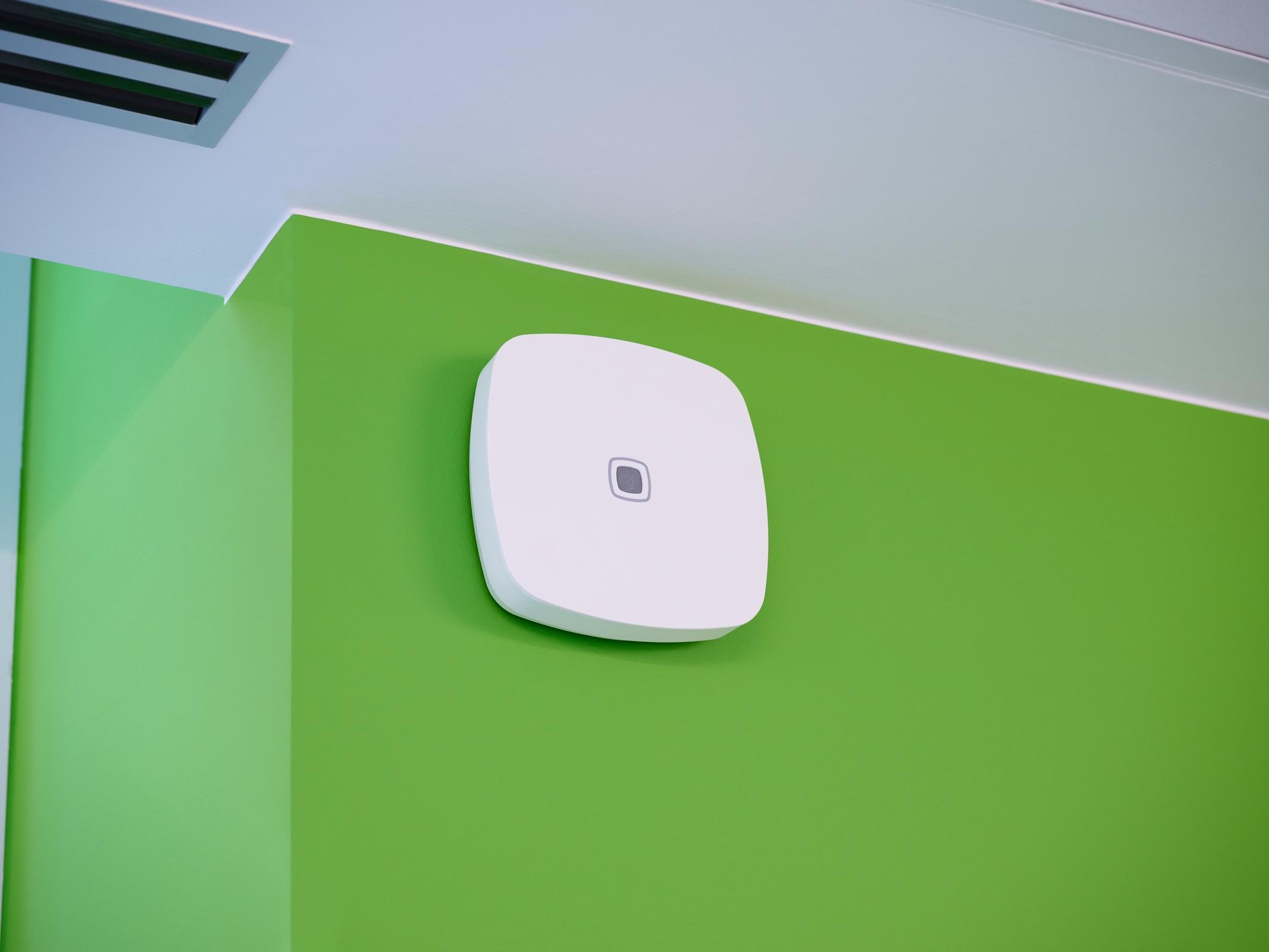 Nuestro sistema inalámbrico fijo de llamada a enfermeras se basa  en nuestra infraestructura patentada de comunicadores R , que forman una red RF. Estos son muy fáciles de instalar (alimentación a través de Ethernet) y se pueden conectar directamente a la red de TI existente.